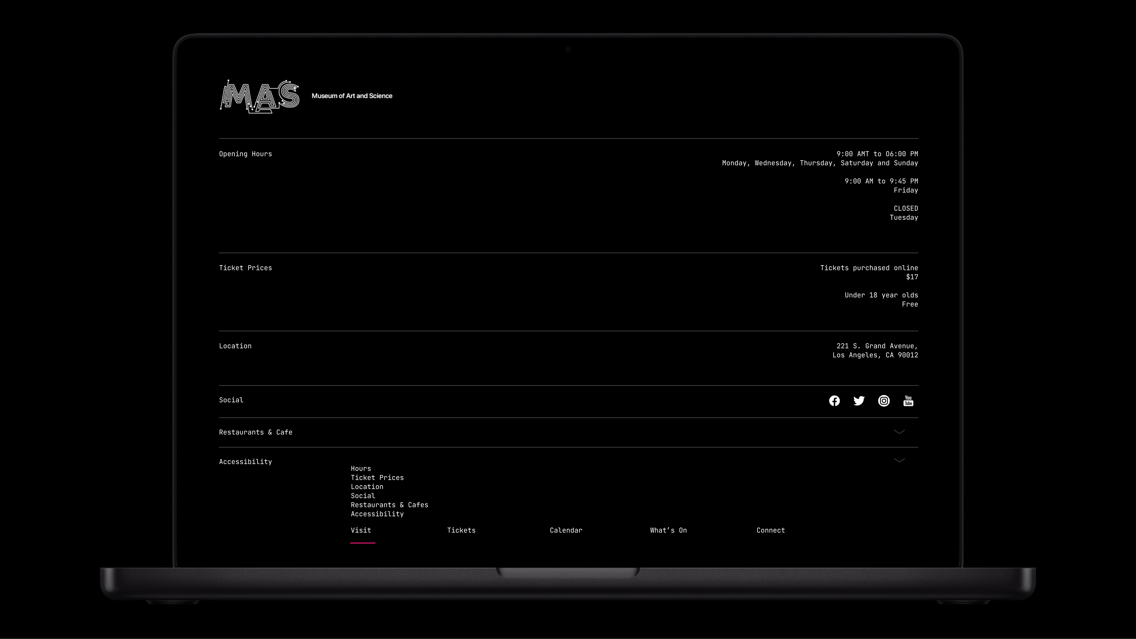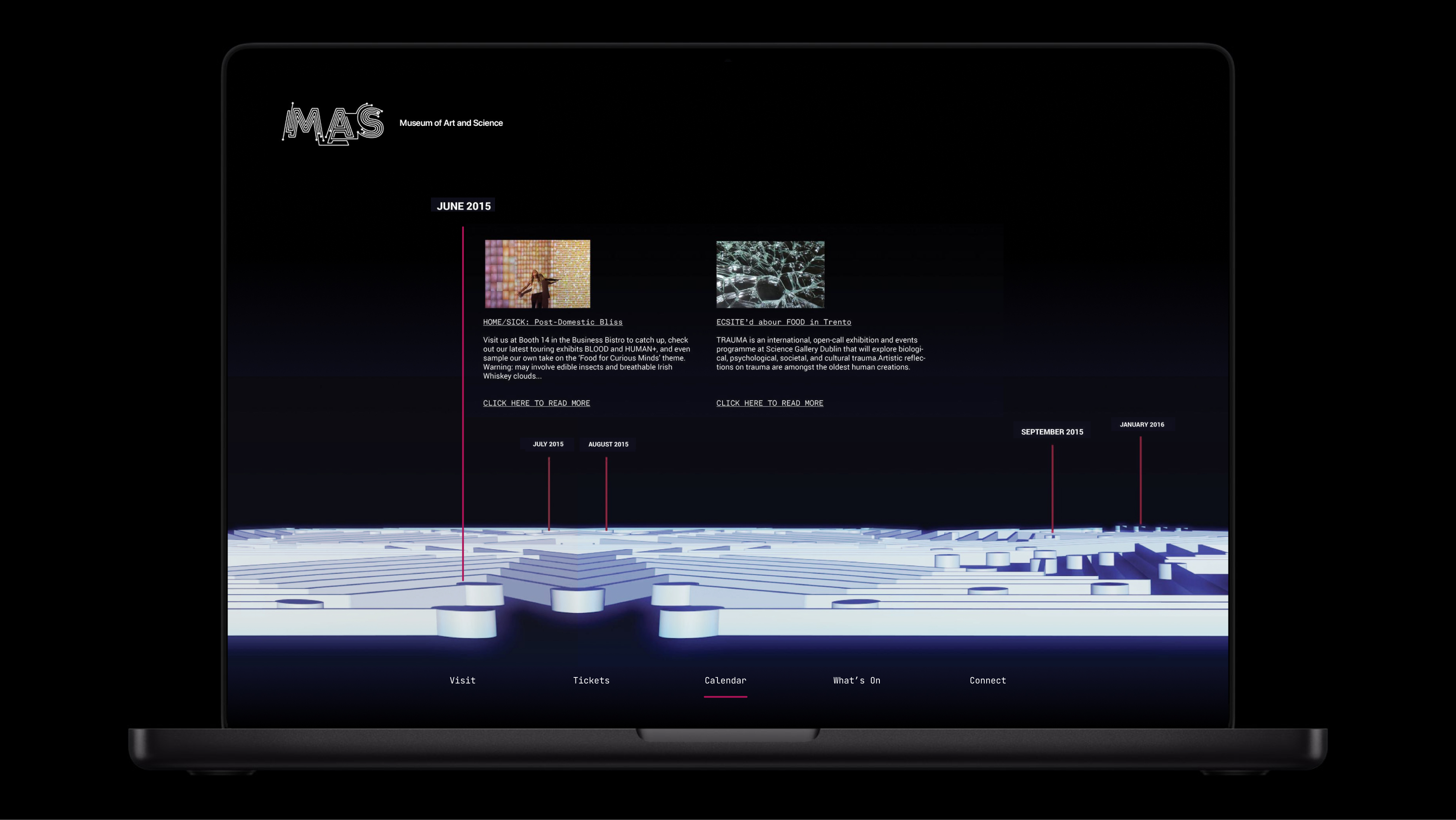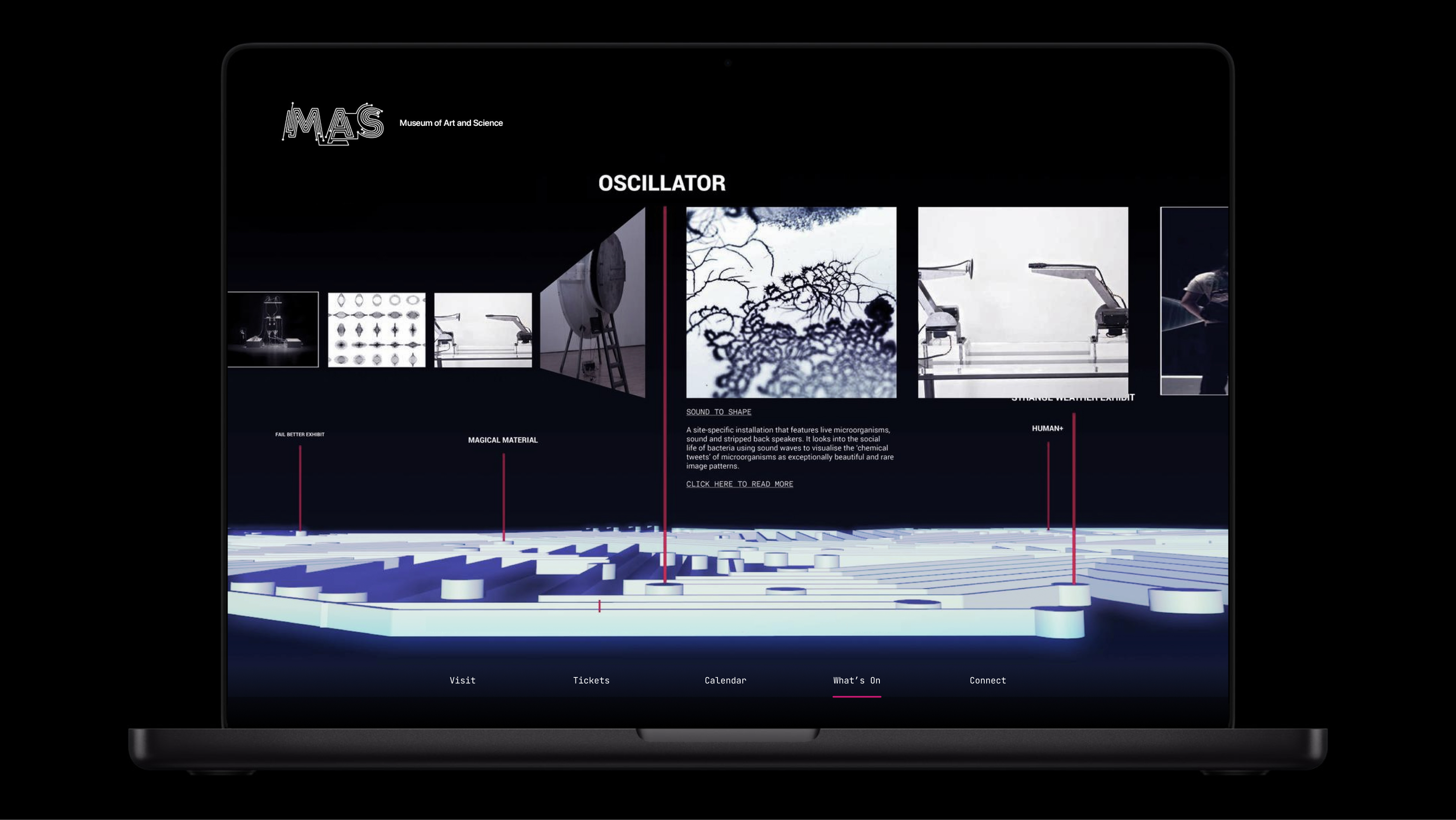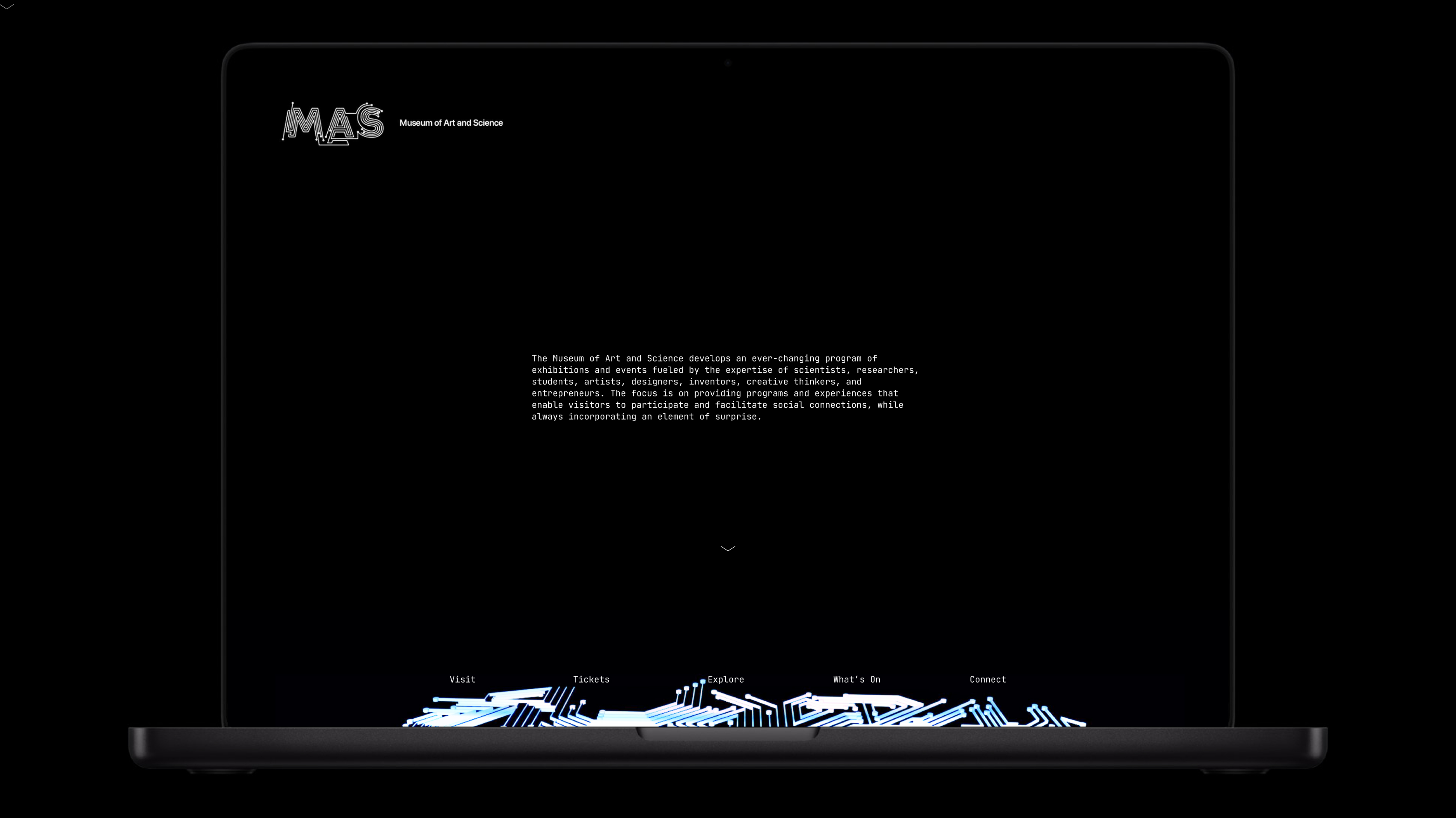 Museum of Art + Science (MAS) allows visitors to get a sense of connection, creation, and exploration through interactive and functional installation. It expresses and explores art in 3-dimensional forms and plays with how art can breathe in space. Through MAS, I hope to introduce a new approach to innovative designing of science and art. MAS offers a wide range of enterprise from performance arts to interactive designs and displays realistic and compulsive atmosphere to the museum.